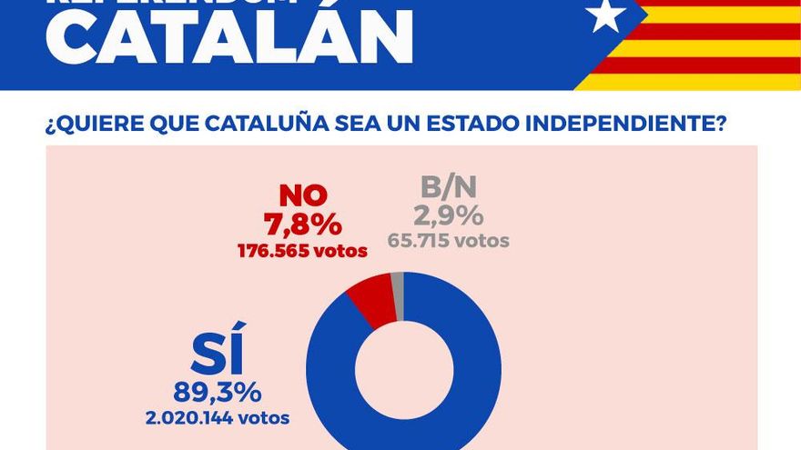 Según los cálculos de eldiario.es, la participación se habría quedado, en el mejor de los casos, en un 42,3% del censo electoral para el referendum. El voto a favor de la independencia supuso un 37,8% de las personas con derecho a votar en el 1-O.