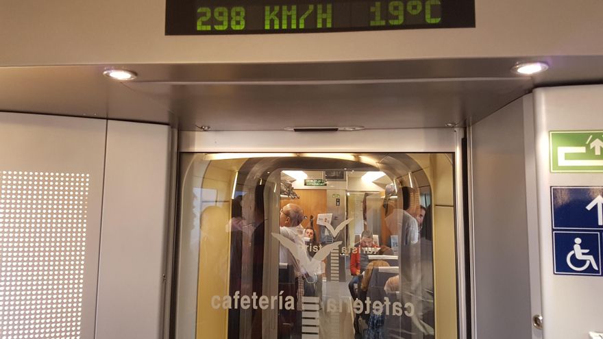 Entre el pasaje hay mucha gente de la casa. Ingenieros y ejecutivos de Talgo, que diseñó y construyó los trenes de alta velocidad, acuden a visitar sus instalaciones en Barcelona. Uno de ellos, de traje oscuro y corbata, saca fotos con su móvil a la manilla del baño, que corre el riesgo de dejar a la gente encerrada, según cuenta el personal de Renfe.