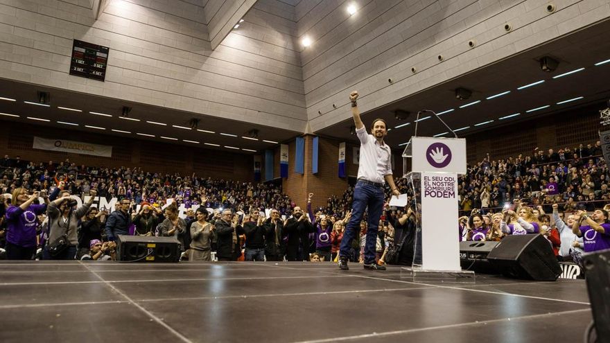 Per fi apareix Iglesias després d'una marabunta de càmeres i llums de flash. Ve acompanyat de Gemma Ubasart, que es consagrarà en uns minuts com la cap de la formació a Catalunya. Després d'una nova onada de clàssics crits d'entusiasme com “ese Pablo como mola se merece una ola” o “Pablo, queremos un hijo tuyo”, Ubasart comença delimitant el públic objectiu: “Zapatero ens va fallar. Tota aquella esperança dipositada el 13-M [de 2004] amb el 'no ens fallis' es va enfonsar amb una trucada de Berlín”. El públic, al contrari que la il·lusió l'any 2010, es creix. Sembla que a ells també els va fallar Zapatero, la qual cosa significa que són d'aquest percentatge que alguna vegada va confiar-hi.