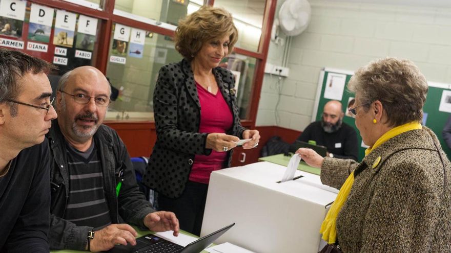 Sale de casa nerviosa y presumida. Le acaba de llamar la consuegra y le ha dicho: “Mercè, ¡sal con tiempo que hay cola!”. Ella se ha puesto el pin y el adhesivo de la Asociación Catalana de Expresos Políticos, la chapa del Ara Es l’Hora, y ha iniciado el breve recorrido que separa su piso de la calle Diputació hasta su colegio electoral, la Escuela Carlit, en el número 162 de la calle Roger de Flor. Paso lento, pero decidido. Mercè Bel tiene 84 años y en cada cita electoral suele recordar a su marido Antonio, fallecido “demasiado joven” a la edad de 47 años, debido a un infarto.