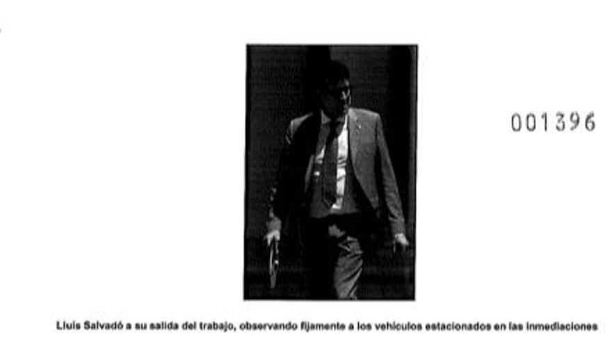 En concreto señala que a Salvadó, tras salir de la conselleria el 7 de julio y dirigirse a un parking de la Gran Vía, “se le observa muy nervioso y observador” con los vehículos y personas de su alrededor. Una vez en el coche, “realiza itinerarios ilógicos y se fija en los vehículos que le siguen cada vez que realiza un giro en su marcha”.
