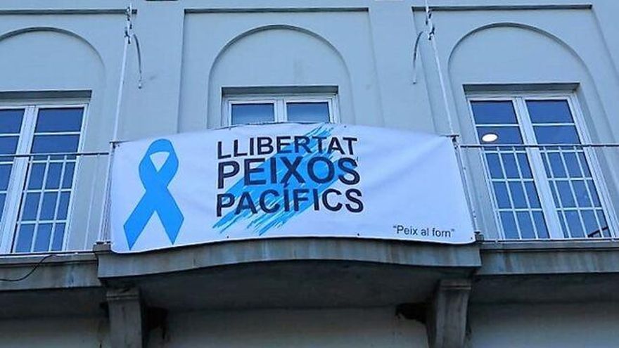 El caso más sonado ha sido el de Port de la Selva, un municipio de Girona de apenas 980 habitantes que desde el 21 de marzo exhibe en el balcón del ayuntamiento una pancarta con el lema: “Libertad peces pacíficos”, que en catalán tiene un sonido muy similar a “libertad presos políticos”.