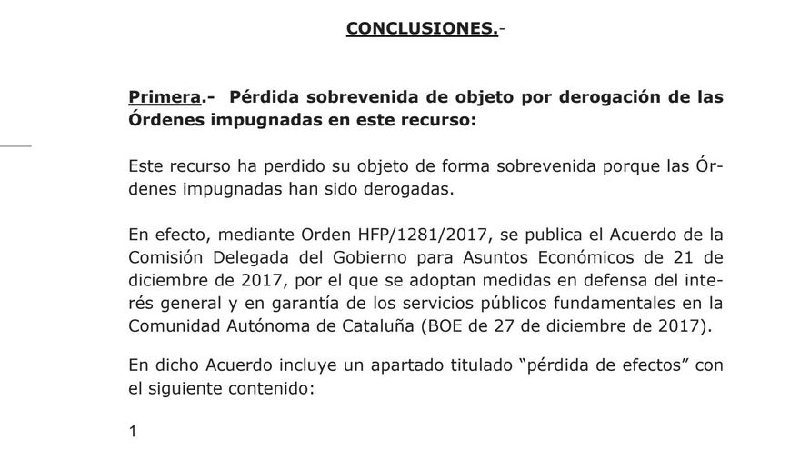 Es entonces cuando el exministro de Hacienda cambia de táctica y, en nuevo acuerdo de la Comisión Delegada tomado el 22 de diciembre, deroga las medidas de septiembre e impone otras pero, ahora sí, ligadas al 155. Con esta argucia, trata de blindar su gestión en Catalunya ante un posible varapalo del Tribunal Supremo. Así, la Abogacía del Estado argumenta entonces que hay una “pérdida sobrevenida del objeto” del recurso, pues los artículos recurridos se han derogado (para ponerse bajo el 155).