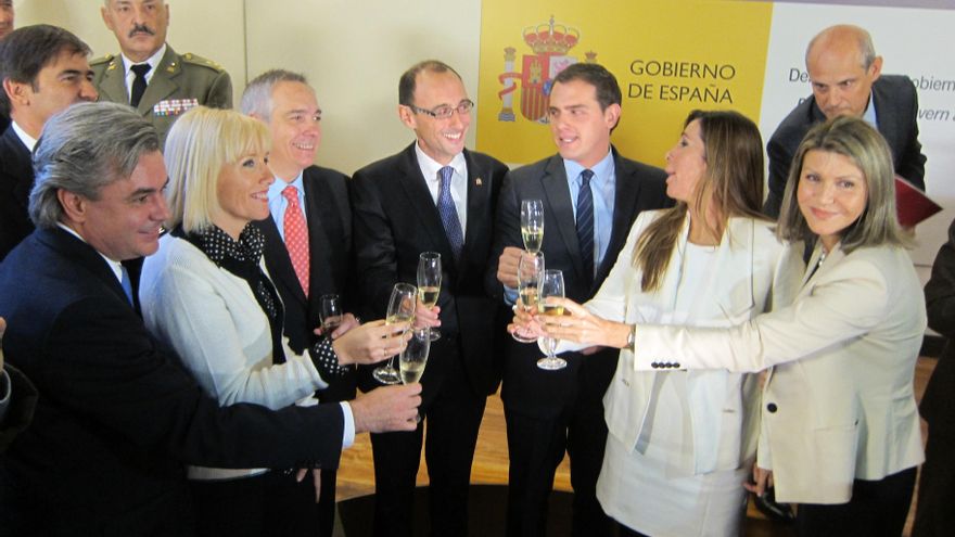 El 5 de diciembre de 2013 hubo una foto en la Delegación del Gobierno en Barcelona que en ese momento se consideró excepcional. Los líderes del PSC, Ciudadanos y PP brindaron con la delegada del Gobierno, María de los Llanos de Luna, para celebrar el 35 aniversario de la Constitución. Era la primera ocasión en que un líder del PSC acudía a ese acto y la imagen del entonces primer secretario socialista, Pere Navarro, junto a Albert Rivera y Alicia Sánchez-Camacho levantó fuertes críticas en el sector más catalanista del PSC.