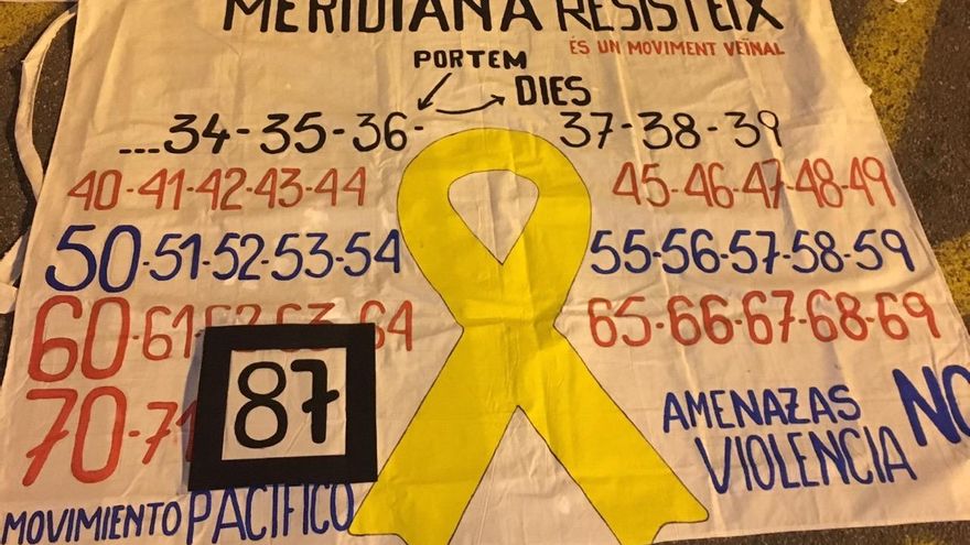 “Los primeros días fueron muy duros”, explica Pere, el diácono, sobre un asfalto que todavía muestra cicatrices de los contenedores quemados. En el suelo, junto a decenas de lazos amarillos, una pintada reza Meridiana resisteix [Meridiana resiste].