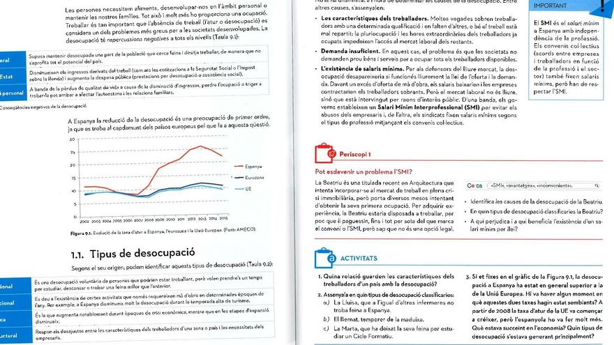 Un libro de 4º de ESO apunta a la existencia del salario mínimo como causa del desempleo