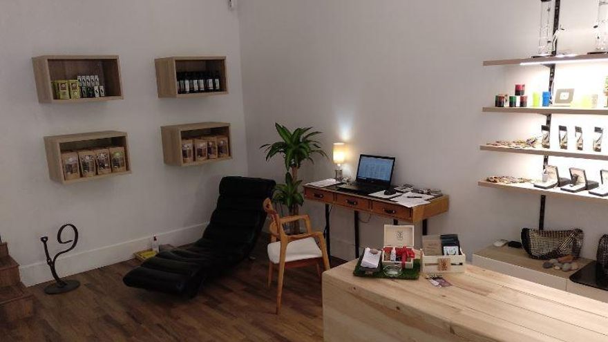 Lejos del aspecto que se presupone a una tienda de derivados cannábicos, el local es luminoso, diáfano y está lleno de productos cosméticos. Una mujer joven entra buscando un aceite para su padre, que sufre de dolores articulares; otro chico acude buscando flores para infusionar y una tercera, curiosa, pasa por la puerta para recoger un folleto.