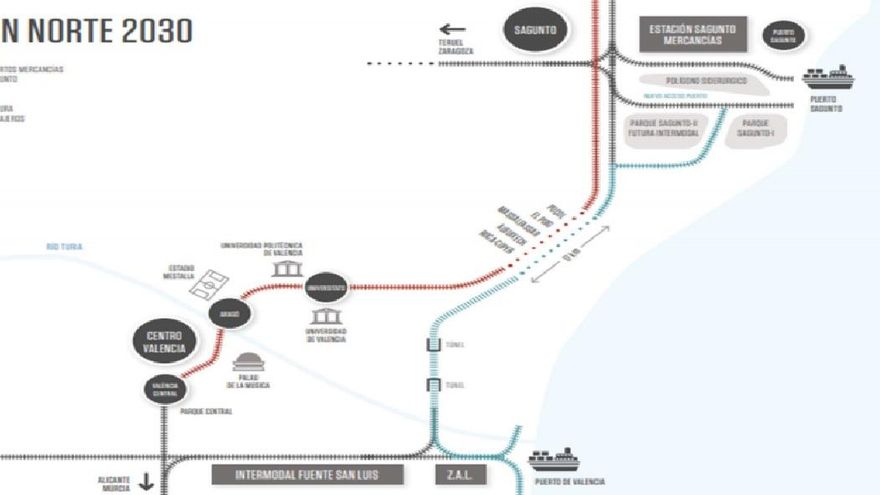 En cuanto a la nueva estación intermodal de la Fuente de San Luis, Boira explicó que está proyectada en dos fases, la primera con cuatro vías y 10 trenes diarios con una terminal de mercancías ligada a la actividad portuaria.
