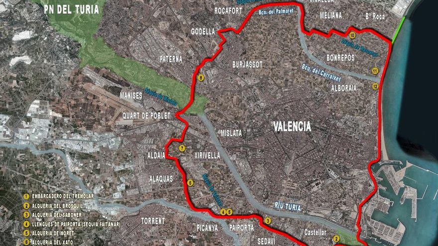 Un corredor circular de aproximadamente 57 kilómetros, destinado a peatones y ciclistas, que comunicará la huerta de València con el mar, conectando toda el área metropolitana a través de caminos históricos, además de recorrer los parques naturales del Turia y de la Albufera.