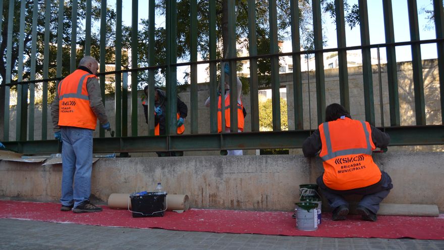 Manuel cuenta con orgullo el estado en que está quedando el Palau gracias al trabajo de su cuadrilla y el suyo propio, desde el sótano hasta el “gris claro” del espacio de la banda de música. Por su parte, Julia participa en el lavado de cara de los exteriores del parque de Rafalafena. Desde ahí, agradece la oportunidad y el alivio que supone el sueldo pero advierte: “Es a cambio de mi trabajo, porque la valla la rasco y la pinto, no me lo regalan”.