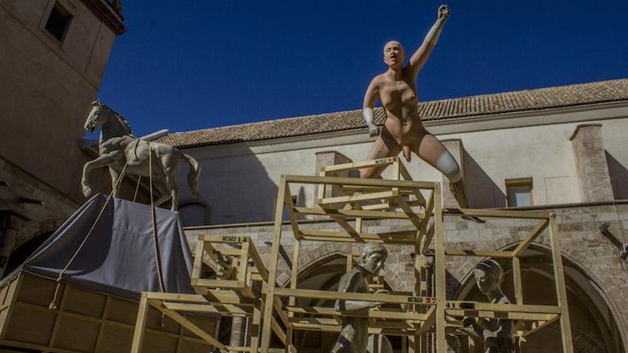 Andújar evoca obras icónicas de la historia de la arte español –imitaciones de Goya, Velázquez, la Dama de Elche, Josep Renau...– y simula los contenedores que las resguardaban en Valencia de la Guerra Civil. Esto lo contrasta con el muñeco principal, un maniquí transsexual que desafía las ideologías dominantes. Okuda por su parte, relacionó las fallas con el Burning man, el festival artístico y libertario del desierto de Nevada, por el fuego y las creaciones monumentales y se ha mostrado encantado de que su obra se queme el 19 de marzo. En el Centre del Carme, en cambio, la podréis visitar hasta el 27 de mayo.