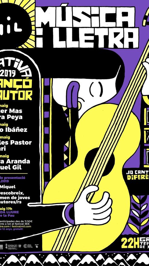 La quarta edició del Festival Música i Lletra (MiL), que es celebrarà entre el 3 i l’11 de maig a Xàtiva, reivindica la defensa de la llibertat d’expressió en el món de la cultura amb el lema Jo cante a la diferència, un vers de la cantautora xilena Violeta Parra que és també inspiració de la il·lustració del cartell del festival autoria de l’artista i muralista Elías Taño. Els artistes Paco Ibáñez, Mara Aranda, Miquel Gil, Clara Peya, Roger Mas, Carles Pastor i Anari, pujaran a l’escenari del festival valencià referent en cançó d’autor, dividits en quatre jornades amb huit concerts.