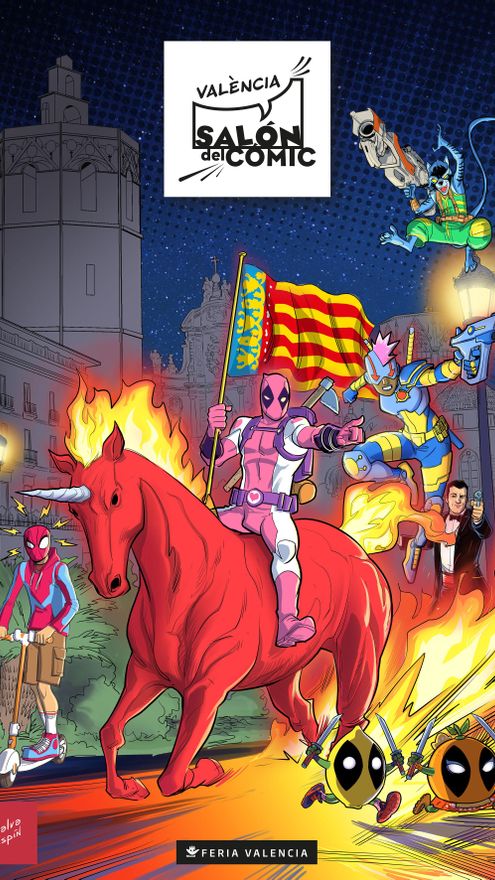 También estará el murciano Salva Espín, autor de referencia de Marvel y que este año ha sido el encargado de elaborar el impactante cartel oficial del Salón del Cómic, un homenaje al controvertido superhéroe ‘Deadpool’. Precisamente el cartel oficial del Salón del Cómic ha sido escogido por Marvel para ser portada de uno de sus próximos cómics.