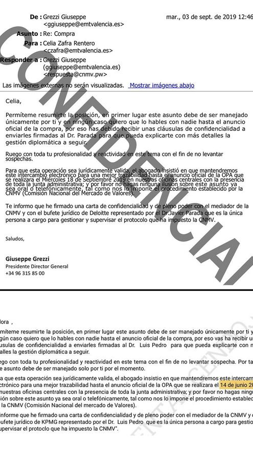 En el caso de la estafa a la EMT, la empresa municipal despidió a su jefa de Administración, Celia Zafra, por haber incumplido el deber de confidencialidad y de custodia de documentación interna y por ocultar información relevante para la investigación inicial. La directiva de la EMT, tal como informó este diario, omitió los correos electrónicos que envió al estafador con las firmas de sus superiores, “fundamentales para el esclarecimiento de los hechos”, según denunció el gerente de la empresa ante el Grupo de Delitos Tecnológicos de la Policía Nacional. En paralelo, Zafra es la única imputada en el procedimiento penal por la estafa, que lleva el Juzgado de Instrucción número 18 de Valencia.