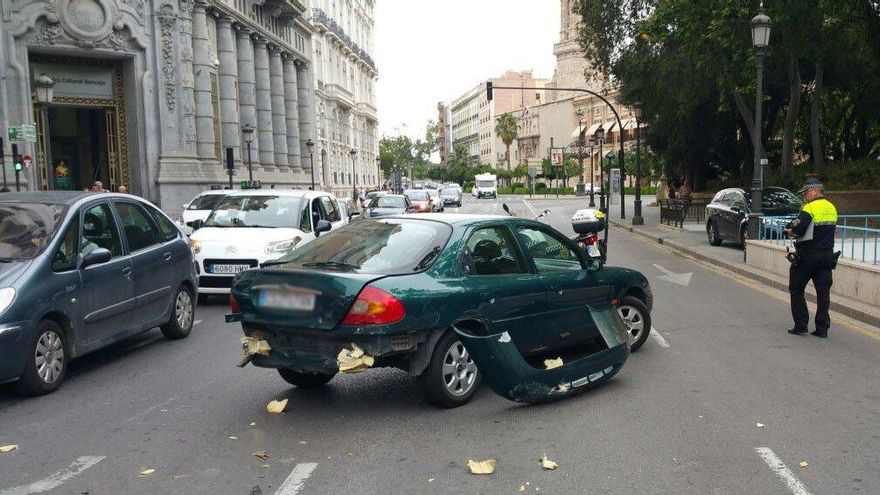 El aparatoso accidente ha causado retenciones en los alredores de la plaza de Alfonso el Magnánimo, aunque el tráfico ya ha sido restituido.