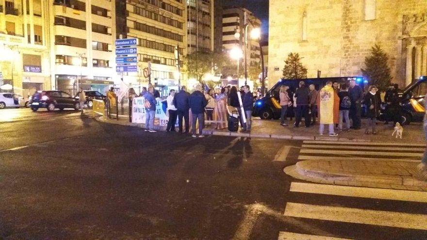 Grupúsculos violentos de extrema derecha han intentado reventar la manifestación durante toda la tarde, lo que ha provocado una carga de la policía a las 18 horas en la plaza San Agustín, de donde partía la marcha de la Comisión 9 d'Octubre. No ha habido detenidos pese a que los contramanifestantes han tirado gas pimienta que ha afectado a varios agentes y periodistas. Posteriormente y durante el recorrido han intentado confrontar con la manifestación pero no han tenido éxito.