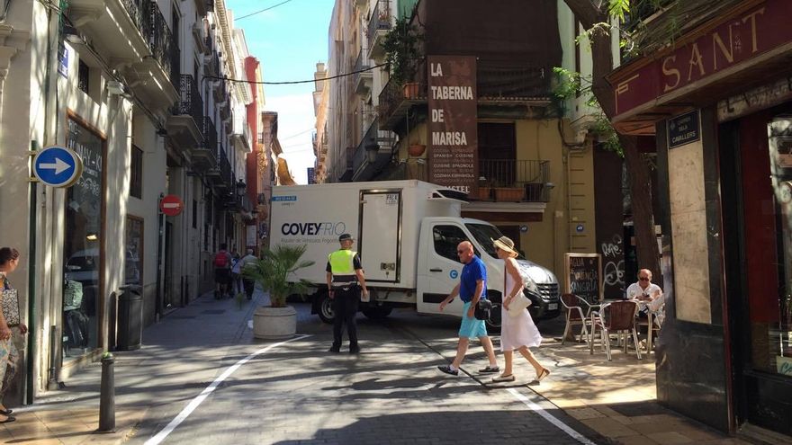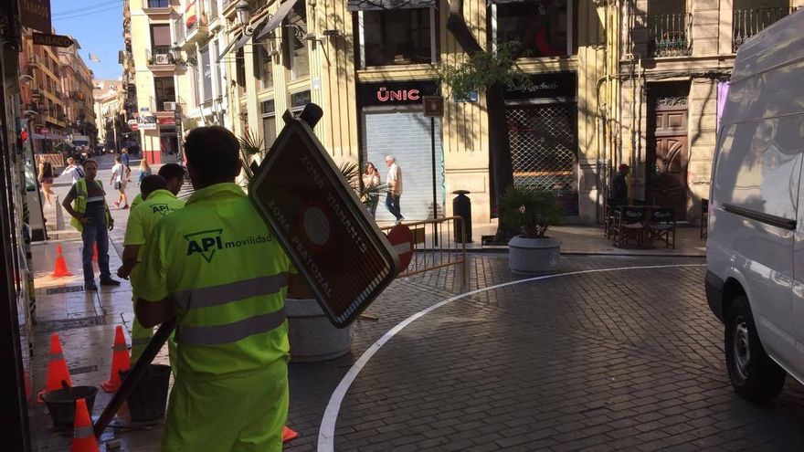 Con la reordenación puesta en march, los vehículos que entran y circulen por la calle Caballeros se verán obligados a girar hacia la plaza Horno de San Nicolás, cuando hasta ahora podían seguir recto por la plaza del Tossal y calle Quart.