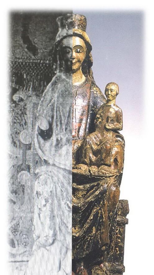 Comparando dos fotografías antiguas de la Virgen con la imagen del catálogo, los historiadores del arte Sonia Cercós y David Montolío llegan a la conclusión “y casi a la total certeza que, ante la coincidencia de morfologías, daños, línea de pliegues, perfiles, secciones, decoración y colores”, se trata de la misma pieza artística. Una fuente policial especializada en delincuencia contra el patrimonio explica que en este tipo de casos la existencia de fotografías originales de las piezas resulta de gran ayuda para averiguar su origen.