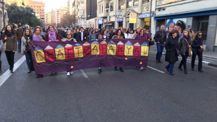 La histórica marcha ha finalizado con la lectura del manifiesto que ha sido precedida por dos muixerangues y un cant d'albaes de l'Horta, que ha sido una verdadera declaración de principios de lo que ha sido, es y será el movimiento feminista: