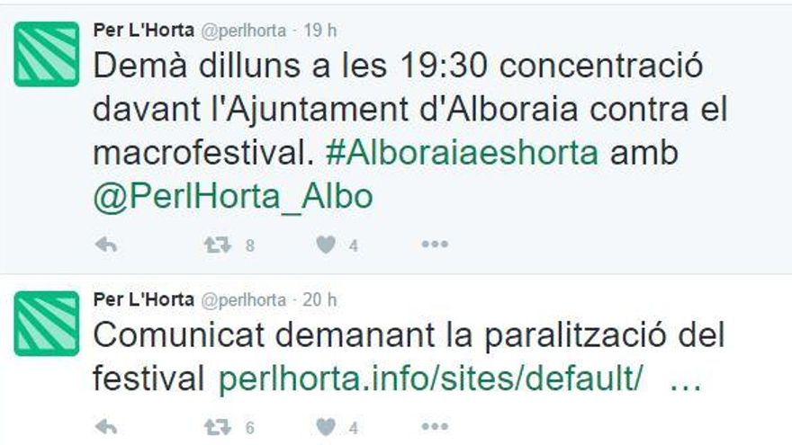 A poco más de dos semanas de su celebración aumentan los rechazos hacia este evento. La asociación ecologista Per l'Horta ha difundido una campaña por redes sociales y varias concentraciones en las que insta al ayuntamiento de Alboraia a que se retire el festival de la zona protegida y muestran su rechazo a esta práctica. Los activistas alertan de que se va a ocupar una zona de alto valor ecológico y agrológico y de que existe un importante asentamiento de familias en dicha zona. A la reivindicación se han sumado otros colectivos como la Plataforma Som Horta d'Alboraia, Acció Ecologista Agró y la Plataforma per la Sobirania Alimentaria del País Valencià.