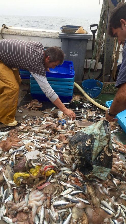 Según los pescadores, quienes se afanan por separar en cajas todo el pescado para su posterior limpieza, de los residuos, que acaban en el mencionado contenedor, la escena es por desgracia algo habitual.
