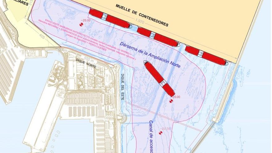 Según la introducción del pliego de prescripciones técnicas del proyecto en licitación, “las obras para la creación de la citada terminal se situarían en la dársena de la ampliación norte del Puerto de València, incluyendo además de la ejecución de los muelles y rellenos necesarios, el dragado de la dársena y del canal de acceso hasta alcanzar la cota necesaria para garantizar la total operatividad de los buques de cálculo considerados, situando el dragado en el caso de la dársena a la cota -20m”.