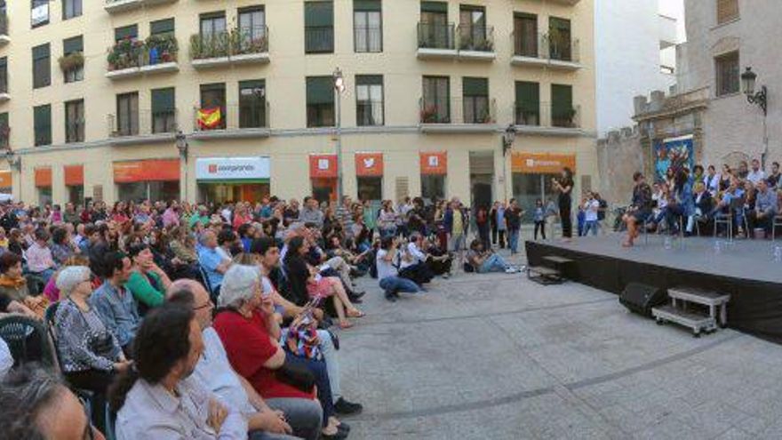 A la plaça del Pilar, en ple barri de Velluters, on Compromís té la seu central, la coalició “A la Valenciana” ha presentat aquest dimecres les seues candidatures per a les eleccions generals del pròxim 26 de juny. L’acte, davant d’uns quants centenars de persones, entre les quals hi havia l’alcalde de València, Joan Ribó, i líders com Antonio Montiel, de Podem, o Marga Sanz, d’Esquerra Unida, ha servit per a fer visible una conjuntura històrica. Per primera vegada, l’esquerra emergent que representa la coalició de Compromís, Podem i Esquerra Unida té opcions serioses de superar el PP com partit més votat al territori valencià.
