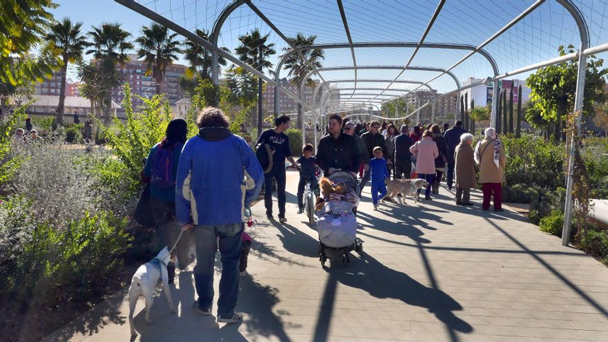 Es lo que ha sucedido con la reciente apertura del Parque Central, una actuación cuyo fin último es soterrar las vías que parten en dos la ciudad y coser los barrios separados por el ferrocarril (Malilla, Cruz Cubierta y San Vicente) mediante una gran zona verde.