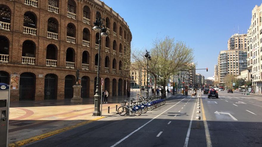 La calle de Colón, una de las principales arterias comerciales de la ciudad, ha tenido muy poco tráfico de vehículos. Los contadores de usuarios del anillo ciclista suben muy poco a poco, convirtiéndose en un fiel reflejo de las limitaciones autoimpuestas en materia de movilidad urbana en la capital. Enfrente del edificio del Tribunal Superior de Justicia, media docena de turistas recorren la ciudad desierta en sus bicis de alquiler, aparentemente ajenos a la pandemia que asuela Europa.