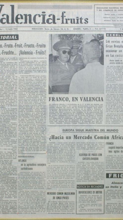 Valencia Fruits, un semanario “predominantemente económico, pero no exclusivamente”, que debe estar pendiente, “fiel a su título, de las cosechas, los mercados, y cuantos factores agrícolas, mercantiles o industriales integren la economía, con amplitud europea y mundial, al servicio de la información y orientación española y valenciana”. Así se presentaba esta publicación económica en el editorial de su primer número, publicado el 15 de junio de 1962, hace ahora 58 años, un medio abierto a Europa y al mundo -como reza ese texto de presentación- en plena dictadura franquista.
