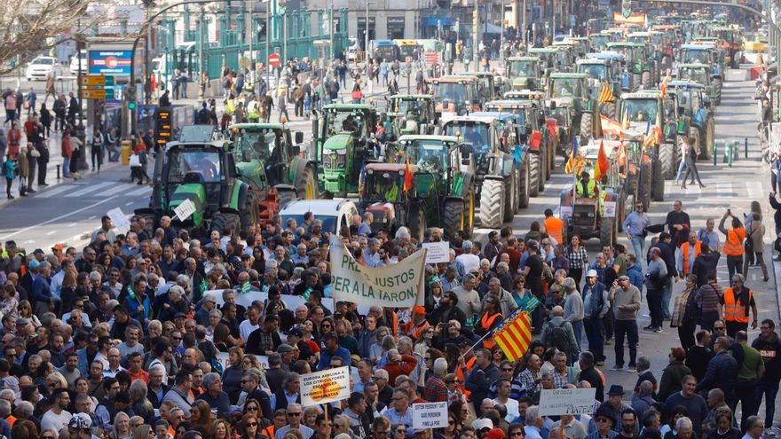 El campo valenciano toma las calles por su futuro y exige medidas al Gobierno: “Pedro, ayúdanos o pereceremos”
