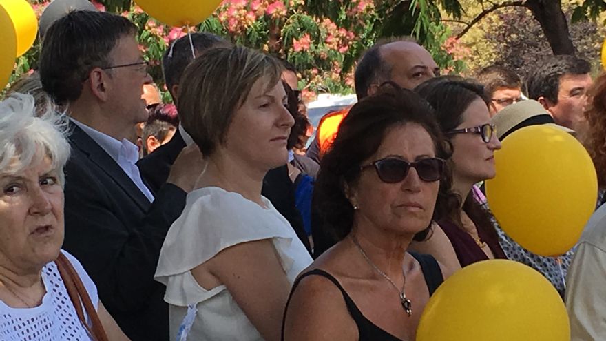 Durante la concentración, el presidente de la Generalitat, Ximo Puig, y la vicepresidenta, Mónica Oltra, se han mezclado, junto a cargos y dirigentes de todos los partidos excepto el PP, con los asistentes. Se ha hecho un homenaje floral a las víctimas, se han guardado cinco minutos de silencio en su recuerdo y lanzado al aire globos negros y amarillos, los colores de la asociación, mientras varias muixerangues levantaban torres humanas de homenaje.