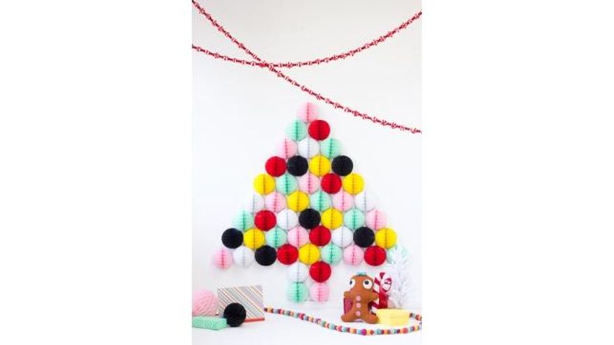 Si combinamos pompones de distintos colores, las posibilidades son infinitas, y aptas para todos los gustos. De nuevo, se trata de una idea que apenas ocupa espacio, ya que este árbol de Navidad también es de pared y, por tanto, apto para pequeños salones y espacios urbanos reducidos.