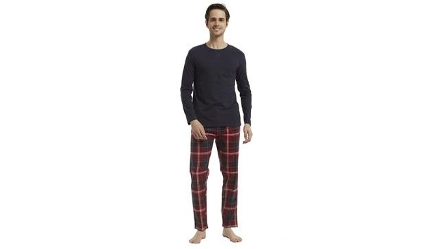 Este Punto Milano es un pijama de manga larga para hombre de colores básicos (azules) con un 50% de algodón y un 50% de poliéster. Esto hace que sea una opción ideal para andar por casa cómodos sin pasar mucho frío.