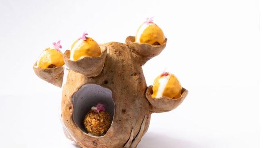 Se llevó el primer premio y el premio a la Innovación para el Maison Melié de Madrid con las Candy Crush Bravas, una especie de trampantojo que parece un caramelo pero, en realidad, es una gelatina caliente de salsa brava al kimchi con un envoltorio de puré de patata.