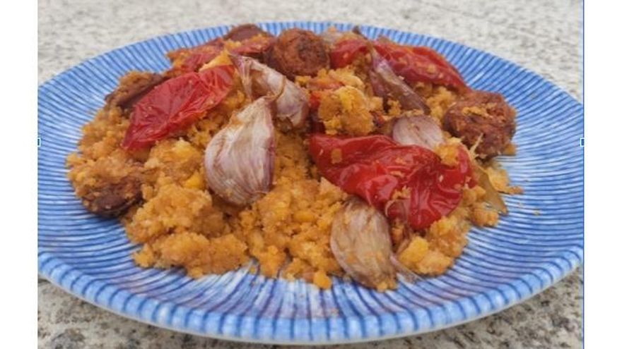 - Añadimos los ingredientes junto con el aceite reservado en la sartén, sin dejar de remover las migas, hasta obtener esa textura esponjosa y de color rojo anaranjado que será la delicia de los comensales.