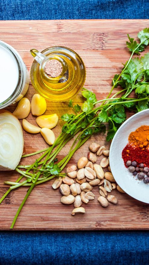 En la parte de arriba del plato puedes añadir hojas de cilantro fresco y una pequeña cantidad de cacahuetes picados.