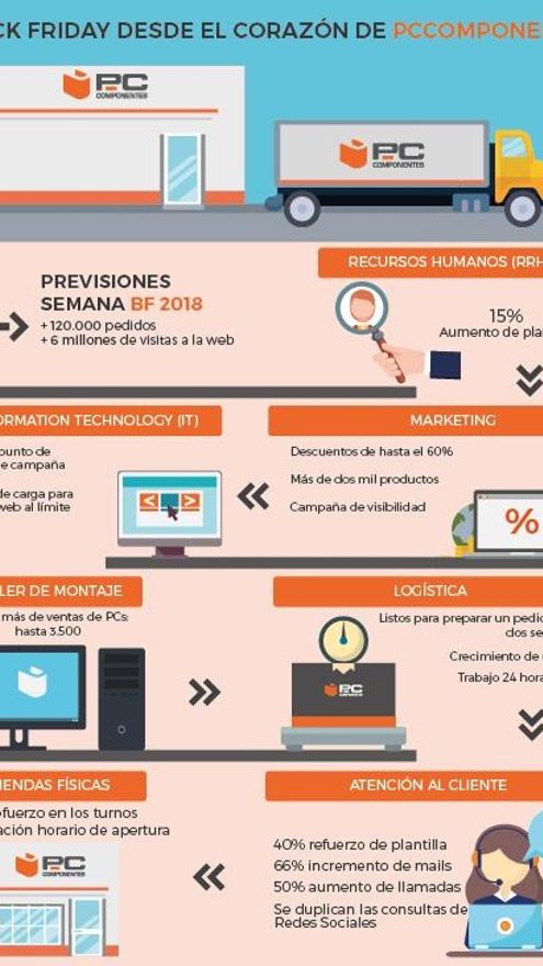 Ante estas cifras, no es de extrañar que los establecimientos lleven meses preparándose para hacer frente a la presumible avalancha de compras que se producirá tanto el Viernes Negro como en las jornadas de descuento previas. Es el caso de PcComponentes la tienda online española de tecnología que por octavo año consecutivo aspira a batir récords de visitas y ventas durante el Black Friday 2018.