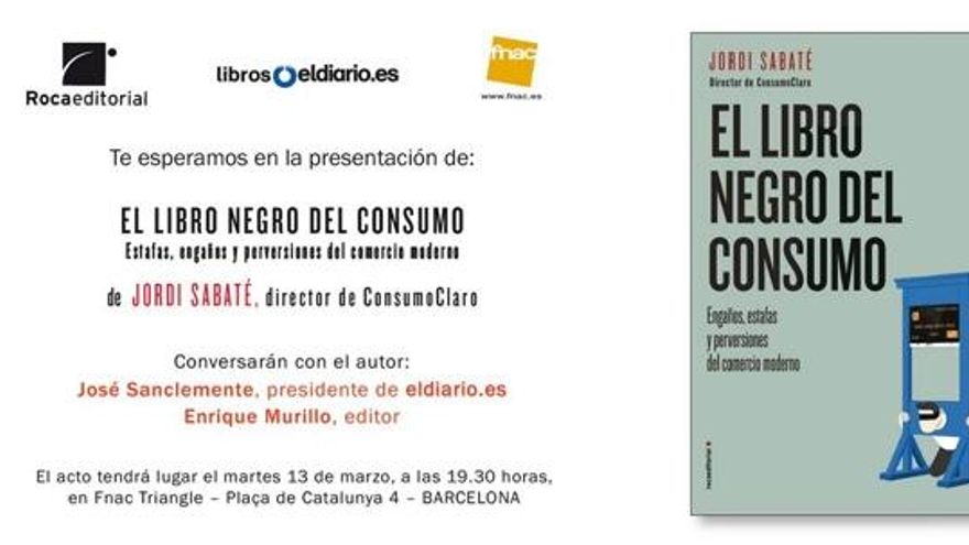 queremos invitarte a la presentación de El libro negro del consumo, que tendrá lugar en Madrid el lunes 12 de marzo en el Espacio Eco, calle Escuadra 11, en Lavapiés. Conversarán con el autor Ignacio Escolar, director de eldiario.es y Enrique Murillo, editor. El evento empezará a las 19:30 horas.