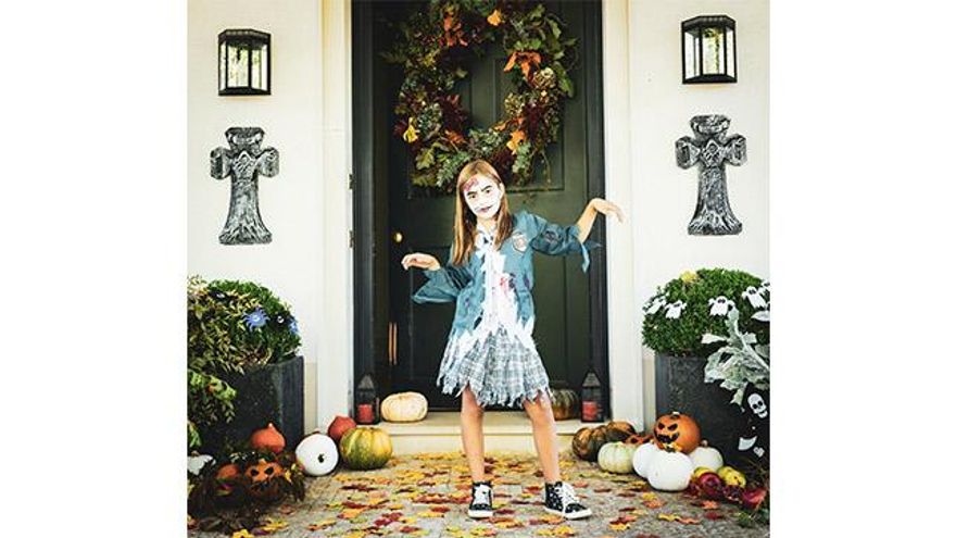 Si a tu hija le pirran las series y las películas de zombies y aprovecha cualquier ocasión para imitarlos, este es su traje. Añádele detalles en la cara con maquillaje para darle más realismo.
