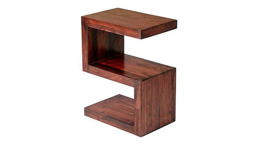 Te proponemos la mesa auxiliar de madera de palisandro con forma de S. Un diseño adaptable incluso como mesilla de noche, ya que permite disponer de tres repisas para colocar objetos decorativos. Como tiene la Certificación FSC, cuentas con la garantía de que el producto procede de bosques sostenibles.