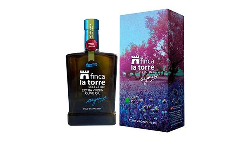 El aceite malagueño de aceituna hojiblanca Finca La Torre lleva la etiqueta de la hoja verde que simboliza la producción ecológica, esto es, el sistema de cultivo de una explotación agrícola autónoma basada en la utilización óptima de los recursos naturales.