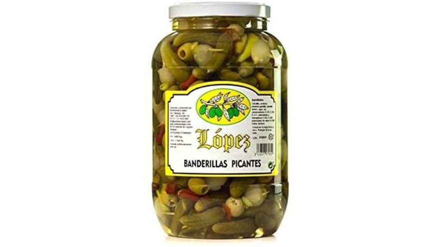 Un bote de gildas con pepinillo, pimiento, cebolleta, piparra y aceituna, de la marca Aceitunas López, tamaño familiar por 24,95 euros, que te va durar para unas cuantas celebraciones.