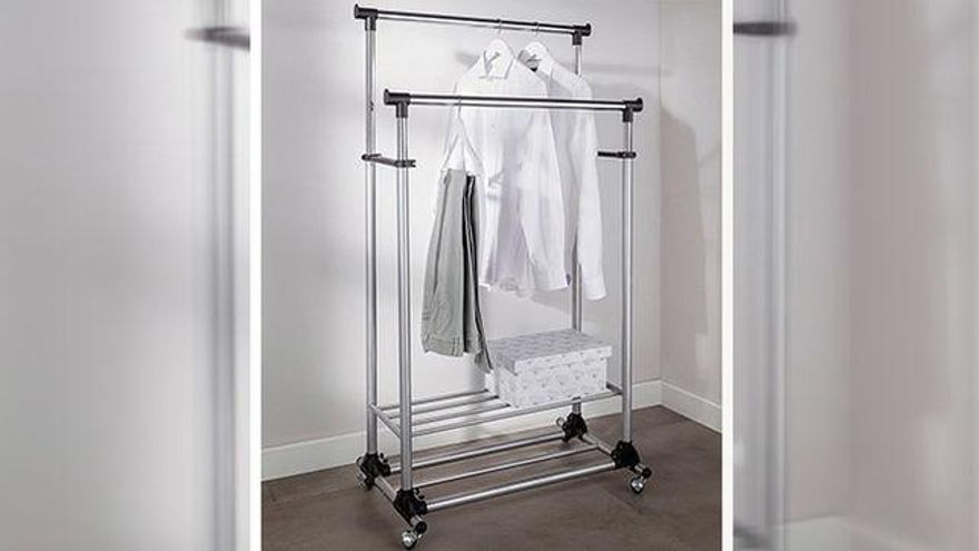 Algunas personas los conocen como 'burritos'. Los parabanes son esos colgadores horizontales de ropa articulados sobre una estructura desnuda, donde solemos colgar abrigos y chaquetas, como el esqueleto de un armario ropero, para entendernos. Son ideales para guardar lejos de la vista ropa pesada o que no conviene que se deforme, como vestidos, trajes y chaquetas. Dan mucho de sí y ocupan relativamente poco espacio. Por supuesto, para organizar la ropa en los parabenes necesitaremos perchas donde colgar las chaquetas y los vestidos y los trajes. Asegurémonos de tener suficientes.