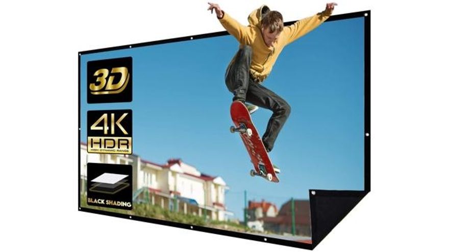 De 120 pulgadas, esta pantalla es compatible con cualquier proyector y ofrece un buen tamaño para ver nuestras películas a Full HD sin problema (o 4K si optamos por un proyector más caro). Además está hecha de un material de fibra sintética que evita la aparición de arrugas, por lo que es especialmente útil a la hora de transportarla. A pesar de ello, se puede planchar si aparecen imperfecciones.
