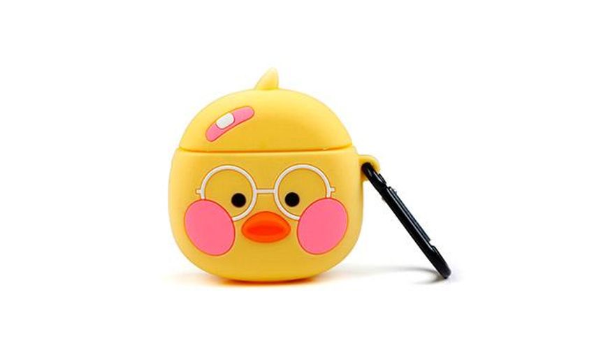 Esta funda universal de silicona con un pollito con gafas es compatible con los Airpods versión 1 y 2, para guardarlos a buen recaudo de forma divertida y colorida, ¡que siempre será más fácil encontrarlos!
