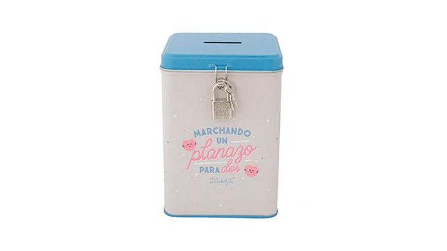 Esta es la hucha especial que Mr Wonderful lanza para Día de los Enamorados, bajo el lema Marchando un planazo para dos, porque se trata de hacer un proyecto común e ir metiendo dinerito en la cajita de aluminio para hacer un buen viaje, una escapada de fin de semana o comer en el restaurante que tanto os gusta. Esta viene con cierre de candado y dos llavecitas, de modo que ambos tengáis control del dinero que ahorréis para cumplir vuestro sueño. El mensaje de amor os recordará vuestro compromiso con la causa.