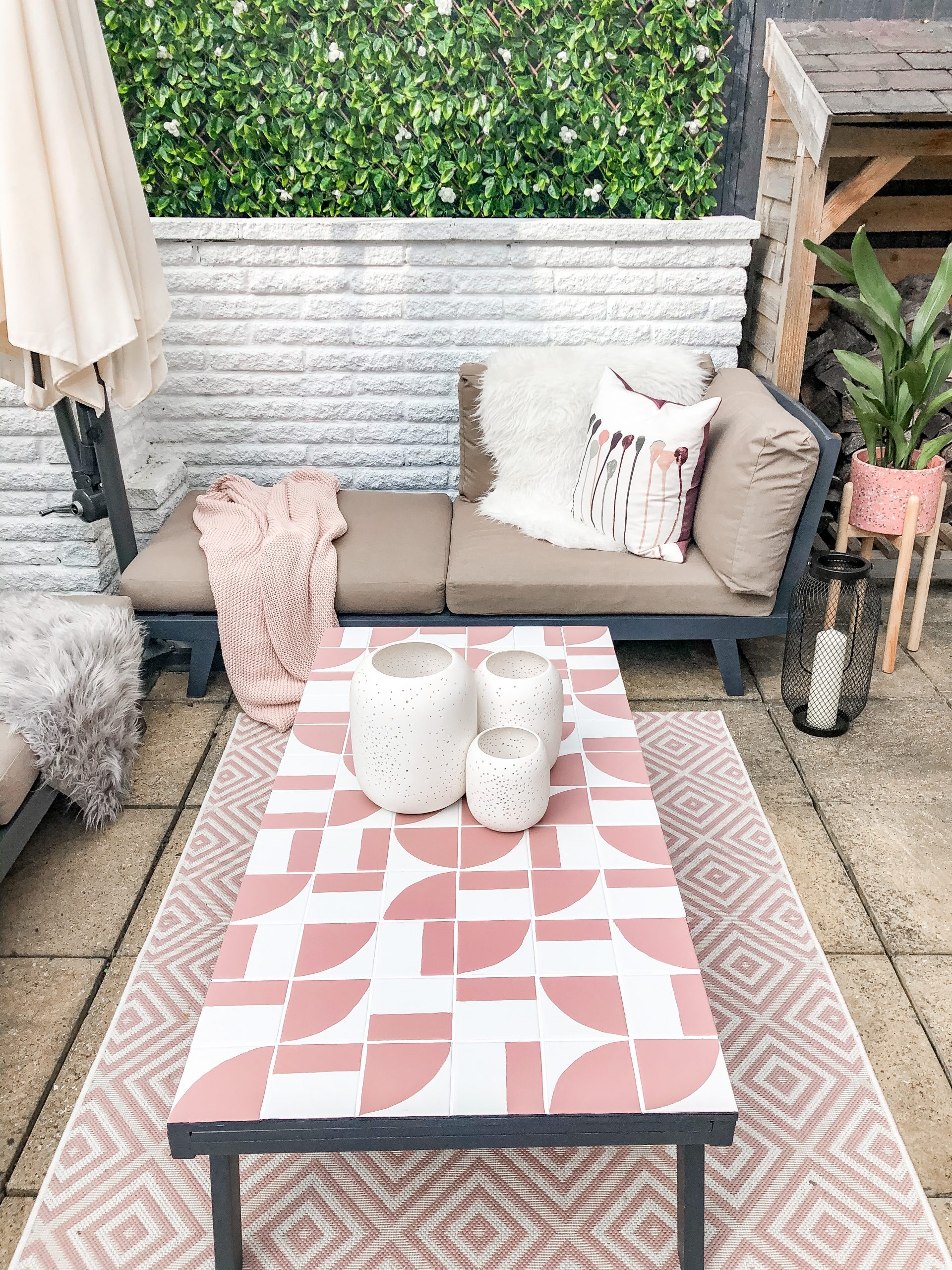 Una mesa con el borde elevado te hará la tarea aún más sencilla, ya que las baldosas se ajustarán a la perfección a la tabla de la mesa, y obtendrás una superficie igualada. Pero si no es el caso, el resultado puede quedarte igual de bonito, o siempre puedes rematar los bordes con alguna baldosa más pequeña.