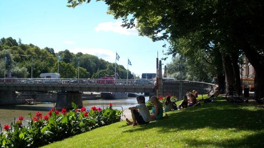 Desde Sattmark a Turku hay sólo 25 kilómetros en bicicleta. Por la mañana, paséate por el mercado popular y vuelve a coger la bici para recorrerte el río Aura, que aglutina a sus dos orillas parques llenos de gente, barcos-restaurante y terrazas repletas de oriundos y algunos turistas tomando algo, un ambientazo.