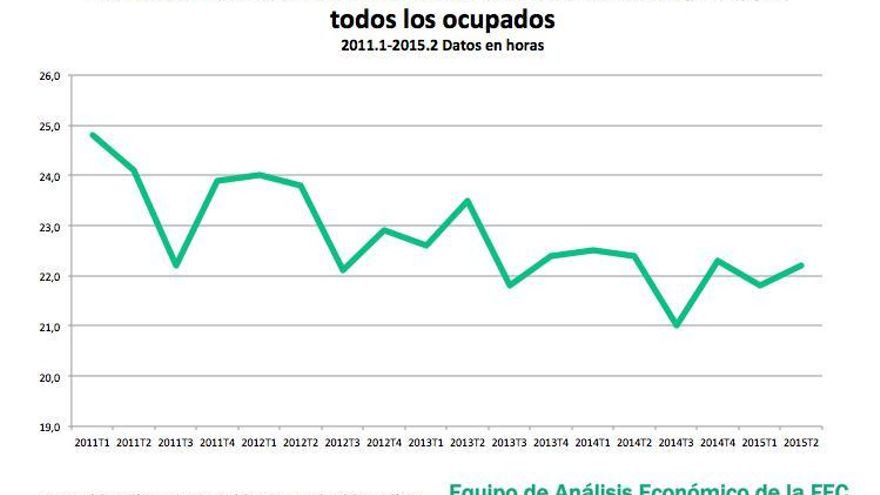 Nos encontramos con un nuevo paradigma laboral que comienza a asentarse poco a poco en nuestra economía: el del empleo precario y trabajadores pobres, tan conocido en determinados países asiáticos. Las políticas de los sucesivos gobiernos del PSOE y PP han aniquilado empleo de calidad y han facilitado que ahora se cree algo de empleo, pero fundamentalmente precario y de baja calidad; y todo ello después de haber estado años destruyendo empleo de calidad. Ello está provocando un desguace del empleo existente, que se puede constatar observando que el número medio de horas trabajadas por empleado desciende.